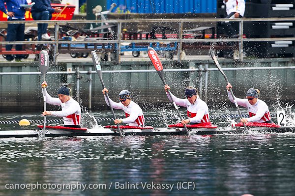 A mild day sparked the opening of action packed racing at the 2011 ICF Canoe Sprint World Cup in Duisburg, Germany. With a light wind cooling the spectators and athletes alike, the scene was set for a great day of racing. The first major final of the day was set aside for the WK1 1000m, which also kicked off the live television broadcast for the event, with Krisztina Zur from the USA taking home the gold. A very close race saw Natalya Sergeyeva (KAZ) only 0:00.883 seconds behind and in second place. Poland’s Edyta Dzieniszewska came in with a strong time of 4:00.924 seconds and in third place.