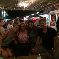 Canadian Christine (second right) already feels at home: last night at a local market at the Gold Coast, Australia.
