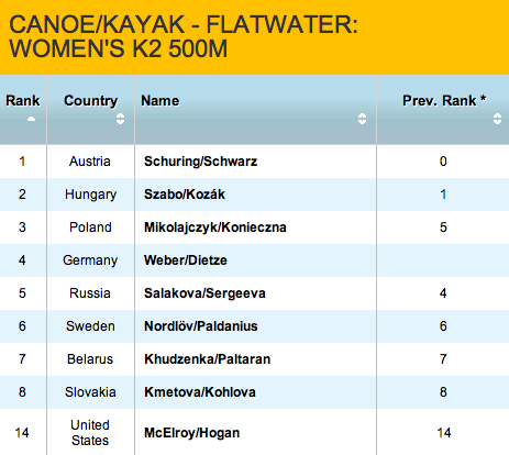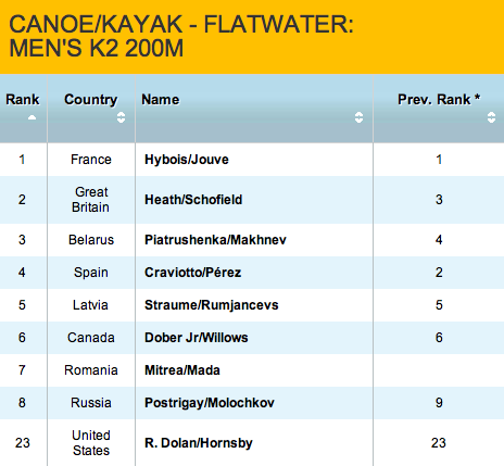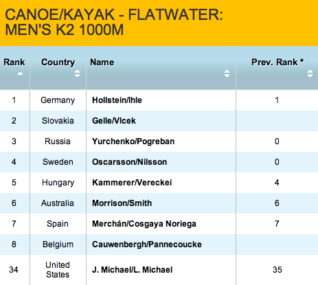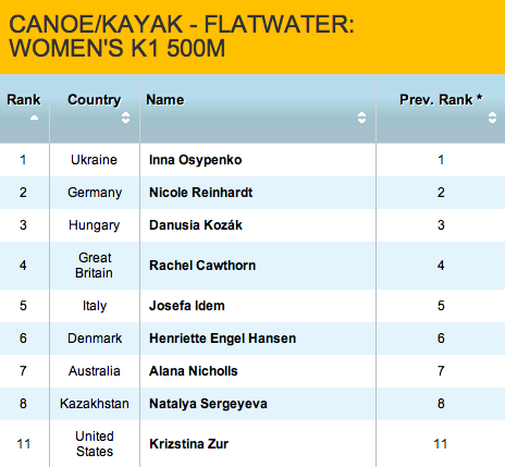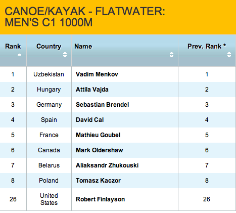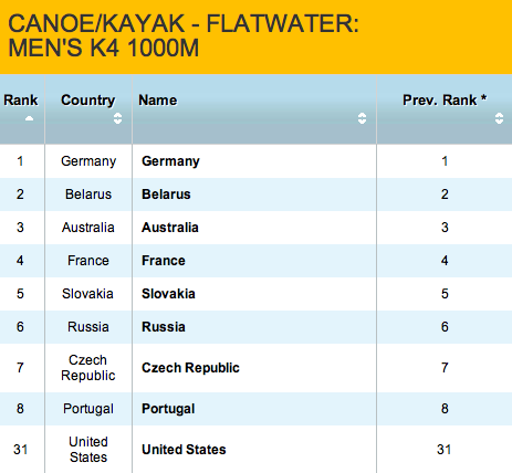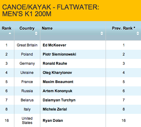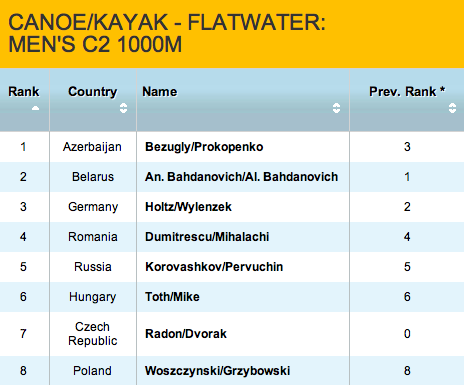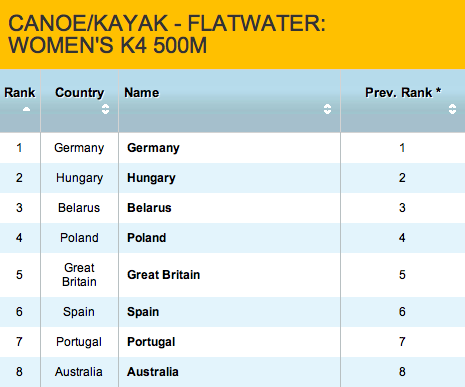 On the left an example of the January 2012 rankings for canoe sprint. If you want to play around with the Medal Tracker yourself a bit folow this link: www.usatoday.com/sports/olympics/medal-tracker.htm. Allow the page some time to load.