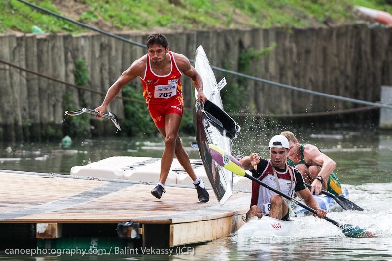 Nagy and Campos succeeded in keeping away from the chasing pair. On the last lap Ebhardt managed to get away from Barros while, for the two leaders, the race was decided at the final portage. Campos jumped out of his canoe quickly to make an impressive run on the bank where he managed to get a 30 metre advantage before entering the water again. He had enough left in the bank to paddle the last 1.5 km on his own to become the new World Champion. Péter Nagy took silver and Matthias Erbhardt, had to make do with bronze this time.