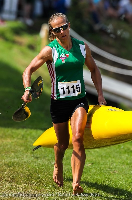 The 35 year old mother-of-two refused to contemplate paddling a tactical race and from the very start just paddled away from the field, doing all 6 laps on her own. With a firm pace, Csay pulled away from the chasing group, composed of locals Stefania Cicali and Anna Alberti (ITA), London 2012 Olympian Henriette Engel Hansen (DEN), Berenike Faldum (BUL) and Krizstina Bedoecs (AUT). On the second lap, they split and only Cicali and Faldum remained to chase Csay, while Hansen, Bedoecs and Alberti stayed back in the third group. Not much changed after that, with Csay widening the gap to one and a half minutes. The interest was in the fight for silver between Cicali and Faldum. The Italian tried twice at the portages to escape, but she was caught again in the water. On the third attempt and with one lap to go, Stefania Cicali managed to get into second position while Renata Csay, already comfortably in front, could afford to relax her pace a bit.
