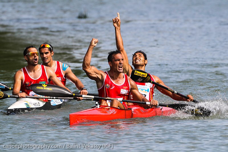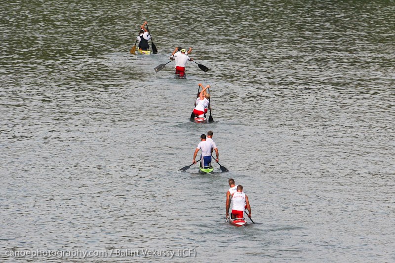 The Hungarians and Italians then seized the opportunity given and pushed very hard, deciding the medals. At the last portage, Csay and Farkasdi broke away and crossed the finish line as world champions, while Cicali and Alberti claimed silver and Hagymási and Kiszli took bronze.