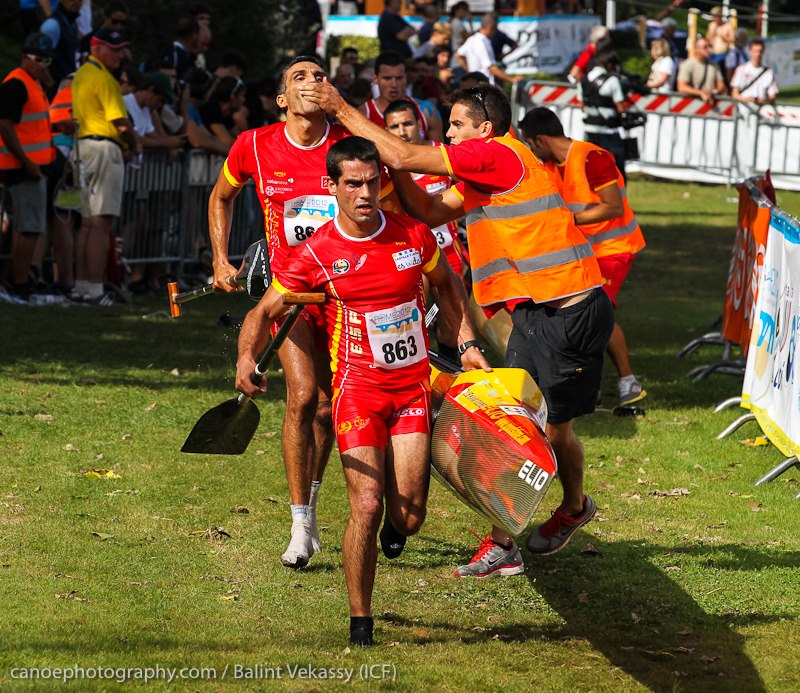 Graña/Ferro (ESP) and Kövér/Györe (HUN) completed a quick portage, but the Spanish were more skilful at the put out and managed to open up a 20-metre gap. They managed to keep their lead; Oscar Graña and Ramón Ferro became new world champions. A few seconds later, Márton Kövér and Attila Györe valiantly gained silver, bronze went to Campos and Manuel Sánchez.