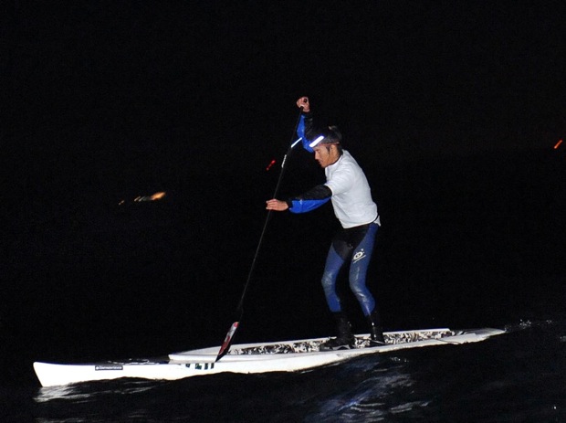 Temperatures drop fast in October at night so the competitors chose to wear 3mm wetsuits as they prepared themselves and made there way by shuttle bus to the starting area. At19:15 sharp the small fleet took of from the beach and disappeared in the dark of night with the only directions by the coastguard in mind: Keep the lighthouse on your left hand side or you will end up somewhere in England.