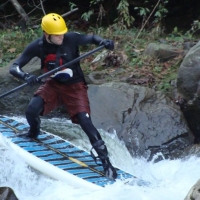 Lindsey Tucci shoots the SUP first decent of the Cowanshannock Creek