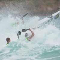 The pair raced most of the ski, swim, board six-man eliminator finale side-by-side and rode the same wave to the beach at the end of the final leg.