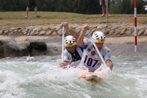 The Chinese were headed for a major upset when they came unstuck at the last gate, getting trapped in the swirling water before they could dig themselves out to finish in 9th place. Second place went to Great Britain's Timothy Baillie and Etienne Stott, 1.12 seconds behind the Skantars, with Jaroslav Volf and Ondrej Stepanek of the Czech Republic claiming third.
