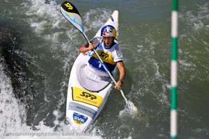 In the middle of the pack coming into the K1 Women's final, Kuhnle clearly put the pedal to the medal and ran away from the competition with a time of 110.05 which included a two-point penalty. Silver medalist Jana Dukatova (SVK) posted a clean 113.33 more than three seconds behind Kuhnle. Maialen Chourraut's (ESP) clean 112.58, a mere 0.25 behind Dukatova, earned the bronze.