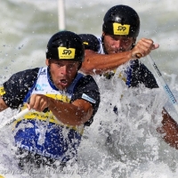 Having to wait even longer to learn their fate were Slovakian cousins Ladislav and Peter Skantar. Seeded at the top going intothe semifinal, the Skantars barely squeeked into the final in 10th place. Clearly fueled by their lackluster semifinal result, the Skantars threw down the gauntlet in the opening run of the final with a blistering 109.86 that held up for 15 minutes and the next five boats, all the way until their countrymen, the Hochshorners, pushed them into second. As expected, Peter Skantar admitted the wait to see how others might impact their fate and medal position was at last mildly nerve-wracking. The final boat of Lefevre/Chanut pushed them down one more podium place to third.