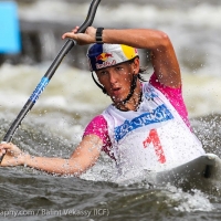 Jana Dukatova (SVK) won the Women’s K1 gold medal on the final day of the Prague World Cup. In a final that included only three paddlers ranked in the world’s top 10, Dukatova delivered her run with the graceful precision that has become her trademark.