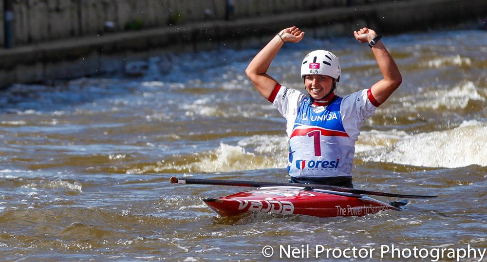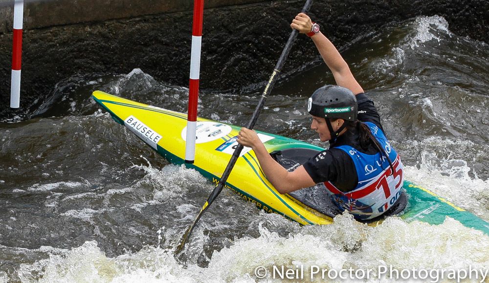 Overall heat winner was 26 year old Lizzie Neave (GBR) with a faultless 2nd run of 98.09 seconds to lead 1.92 ahead of Olympic champion Émilie Fer (FRA). Fer had set the pace in the 1st runs with her time of 100.01 seconds. The enormous shock was the exit of Austria’s 26 year-old Corinna Kühnle who came to Prague as reigning World Champion and one of the favourites. She posted a 98.66 second time but incurred a 50 second penalty on the downstream gate 21. She then put down a 100.95 quick second run but again was awarded a 50 second penalty for downstream gate 16. The semi-final comprised 15 nations including Great Britain, Australia, Slovakia, Germany, Australia and Germany who each secured all three boats in the semi-final.