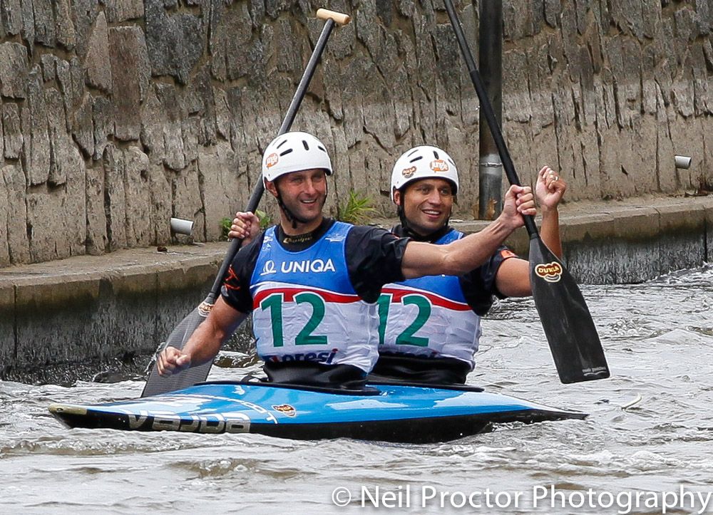 The final truly belonged to 26 year old Czech Vavřinec Hradilek who did not disappoint his home support with a phenomenal 94.52 seconds including a touch K1M winning run in Troja. The local Czech supporters were utterly deafening and the Czech commentary got faster and faster. Local 20 year old Jiři Prskavec (CZE) had previously just taken the lead with 6 paddlers remaining in the final with 95.90 seconds clear. While he surrendered his lead to his older and more experienced team-mate, both then had to wait for the remaining 4 paddlers to finish before there was an almighty cheer from both the stands and Czech team.