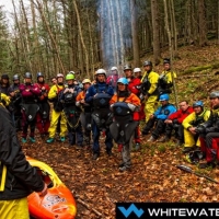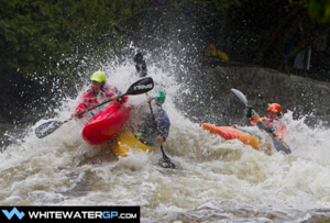 A driving rain and steep rocky banks along the side of the river made it a difficult environment for organizers and judges. Competitors had to walk back up to the starting line after each race hauling their kayaks over fallen trees and small cliff bands. “I got up there with no breath and had to jump right into my kayak for the race,” said Anton Immler a Swedish paddler who gained notoriety while working on the White Nile as one of the world’s best big water paddler. In the finals Nick Troutman ended up accelerating out of the middle of the course to take first followed by Brian Kirk and Anton Immler in third. Check the out the full results here http://www.whitewatergrandprix.com/en/results.html.