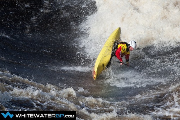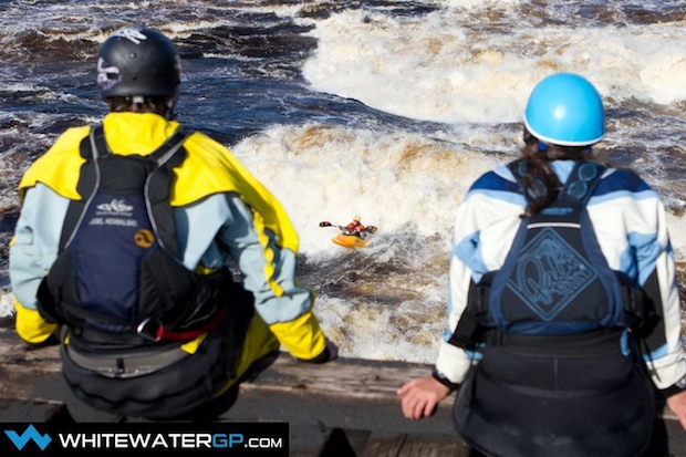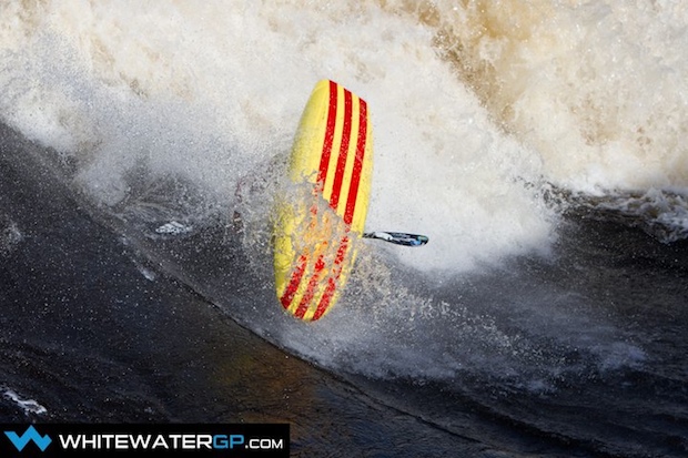 Spectators watched the event from a railway bridge that was conveniently located above the waves. There were three heats with athletes getting 6 rides, the best two counting, and no finals. This was the platform for the freestyle gurus. Mat Dumoulin came off the injury list demonstrating to all that this wasn’t his first rodeo, winning his heat smoothly and decisively. However the moves of the day came from freestyle icon and current overall leader Ben Marr, and a name familiar to the freestyle realm, Dane Jackson. The two finished the competition sharing the first place spot, with Dumoulin following them and current ICF freestyle champion Nick Troutman in fourth. Perhaps the most impressive part of the day came during the women’s heat when Katya Kulkova from Russia threw an airscrew that shocked the crowd, a trick that event director Patrick Camblin remarked will likely "win best trick in the Rider of the Year Awards".