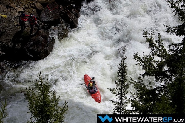 The water level had dropped significantly since yesterday, but the stacked section of waterfalls and slides were still flat out burly. Some were stoked; others probably didn’t want to even run it. “I am ready for some stouts,” said Evan Garcia, an athlete needing to pick up some points to stay in contention for the overall winner. “ I am ready to run it.”