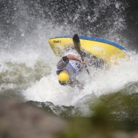 The finals saw Dane, Peter, Joaquim, Adam and EJ lining up in the eddy to throw down. Again Dane hit his high score on his first ride a 755, a good 180 points below his best ride of the Cup stop. Joaquim impressed everyone with his agressive and colorful style flashing his carbon boat around with determination, finishing with a high score of 728. But the ride of the day for the finals was from the veteran Peter Csonka who recorded a final ride of 916! Sadly he had to wait for Dane’s last ride. A very audible sigh released as Dane flushed early in his last ride scoring only 471 points giving Peter a key victory. Super exciting finish!